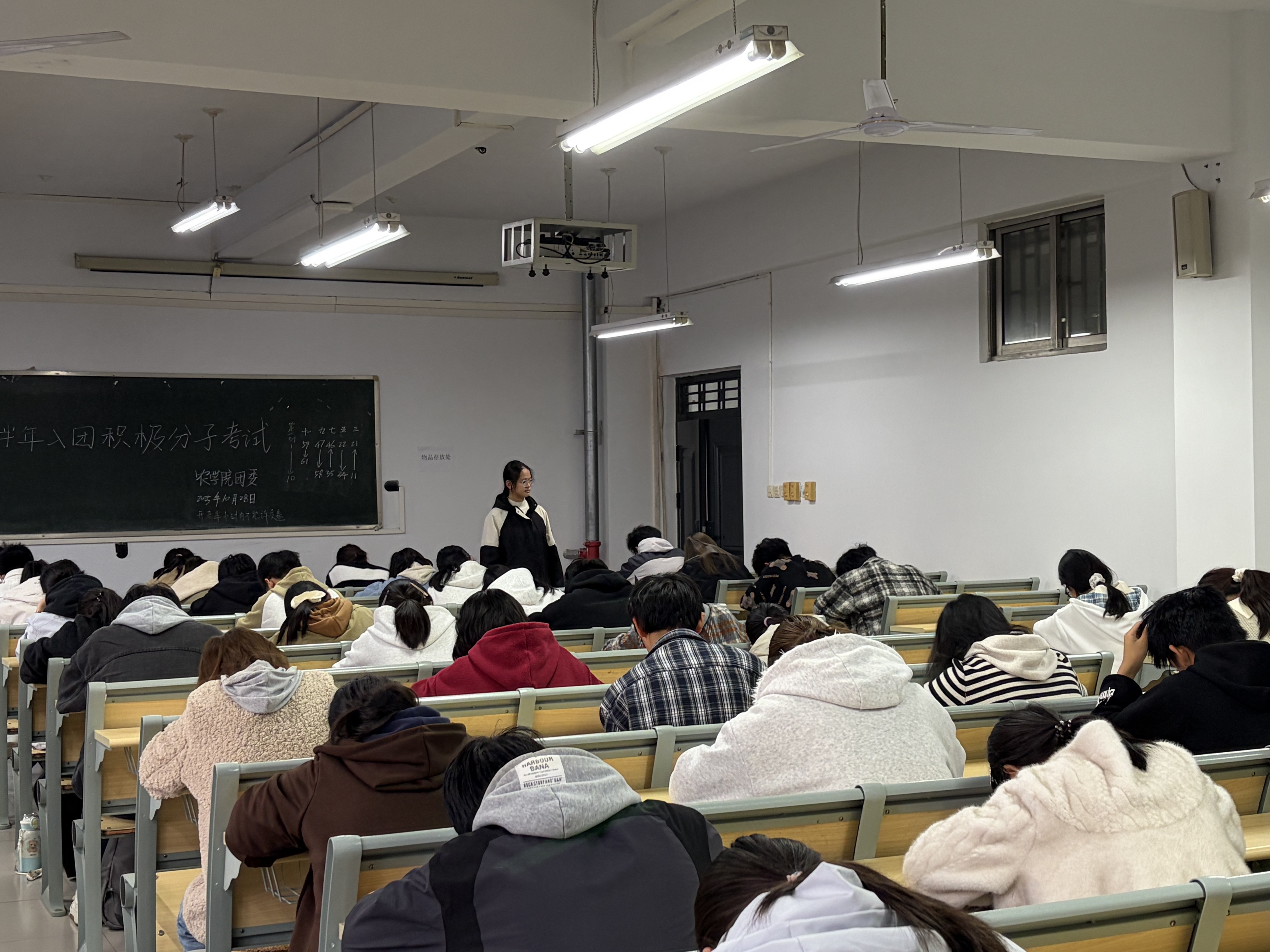 本次考试为笔试考核,采用闭卷形式,试卷内容涵盖团章、团规、时事政治以及团支部的选举和“推优”的相关内容。考试期间,学生们自觉遵守考场纪律,认真作答问题,监考员们严格监考,规范考场纪律,展现出良好的考试风气。考试结束后,监考员按顺序收卷,学生们有序离场。