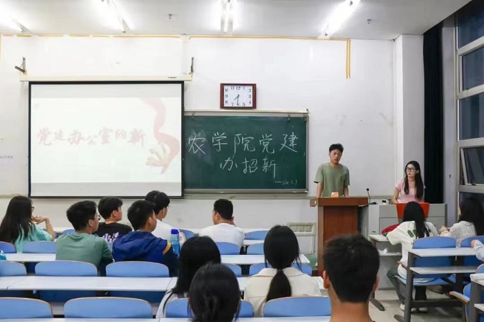党建办公室招新宣讲会,院党建办公室负责人2022级种子科学与工程专业2班刘博、各部门负责人及2023级部分学生参加了本次活动。