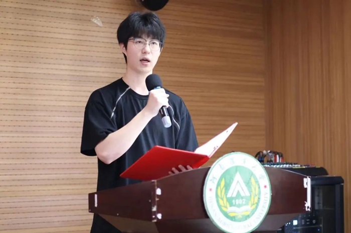 第六期青马班优秀学员代表张铎发言,他总结了自己在青马班培训中的收获,表示青马学员要用高标准要求自我,时刻以饱满的激情和高昂的斗志迎接挑战,提升自己的思想觉悟,把理想抱负发挥到实践中,为建设祖国做好准备。