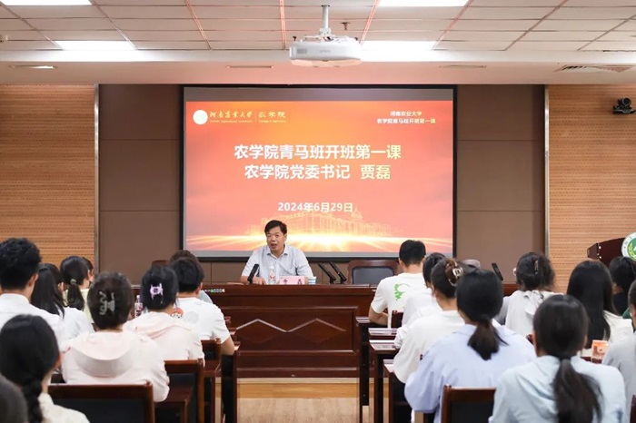 贾磊为第七期青马班学员授旗,希望学员积极响应时代号召,到基层去学习,在服务中奉献社会,在实现中华民族伟大复兴中国梦的新长征路上奋勇搏击。与会领导老师为第六期青马班优秀学员代表颁发荣誉证书,为第七期青马班学员代表授书,希望学生坚持理论联系实际,切实提升履行职责的能力和水平,不断夯实政治根基;上好每一堂课、读好每一本书,强化实践锻炼,珍惜宝贵的学习机会并圆满完成本次培养班的各项学习任务。方芳勉励同学们通过培训能有所收获,“把论文写在土地上”,在未来勇担重任,成为栋梁之才。