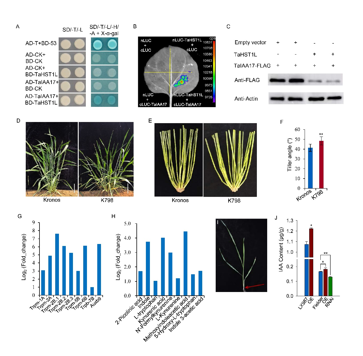 分蘖角度是小麦重要农艺性状之一,同时也是小麦理想株型构成的关键因素,其影响小麦群体的光合效率与适应性,与小麦产量密切相关。培育分蘖角度适中的小麦品种能够有效地提高群体产量;解析小麦分蘖角度形成的分子调控机制可为小麦株型的遗传改良提供理论参考和基因资源。然而目前关于小麦分蘖角度基因克隆的研究仍鲜有报道,分子机制与作用网络仍不清晰。围绕这一科学问题,团队进行长期探索,挖掘出多个小麦分蘖角度遗传调控位点,并进行深入研究。