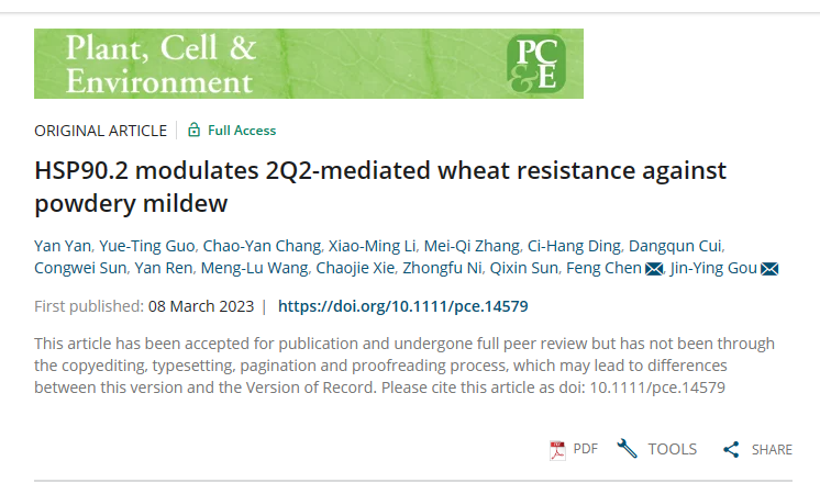 陈锋教授、任妍副教授,宁波大学羊健研究员和河北农业大学王逍冬教授、李在峰教授为共同通讯作者。文章链接//doi.org/10.1111/pce.14579
