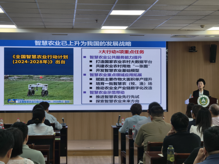 朱艳教授在强调智慧农作技术在保障国家粮食安全和驱动农业生产方式变革重要意义的基础上,从实时农情感知、精确农作处方、精准农田作业、智慧管理服务方面详细地介绍了智慧农作理论框架、技术前沿与应用实践,提出了基础数据一个库、农情监测一张网、农作处方一套图、农田作业一条链和管理管理一片云的“五个一”智慧农作目标与技术体系。同时,朱艳教授还介绍了智慧农业学科及专业体系建设的南农经验与实践。