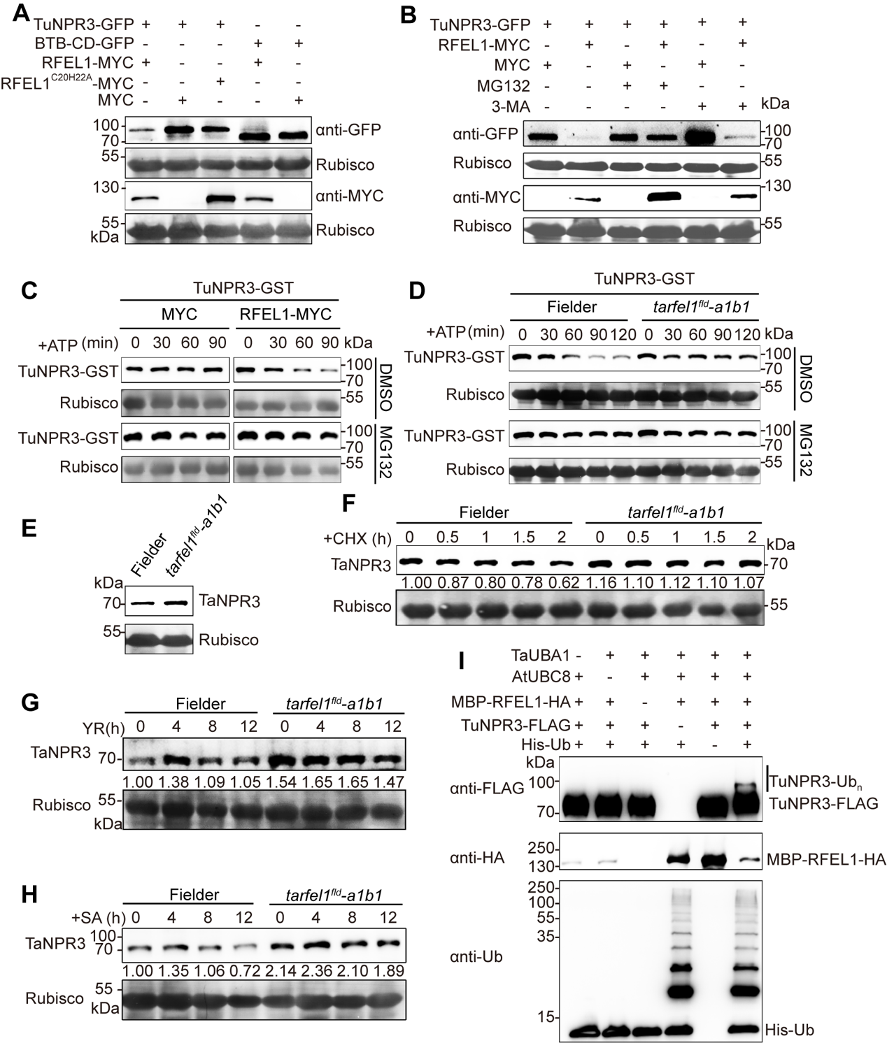 RFEL1的表达,RFEL1利用其E3泛素连接酶活性介导TaNPR3的泛素化修饰,通过26S蛋白酶体途径降解TaNPR3蛋白,从而关闭TaNPR3的转录抑制功能,允许