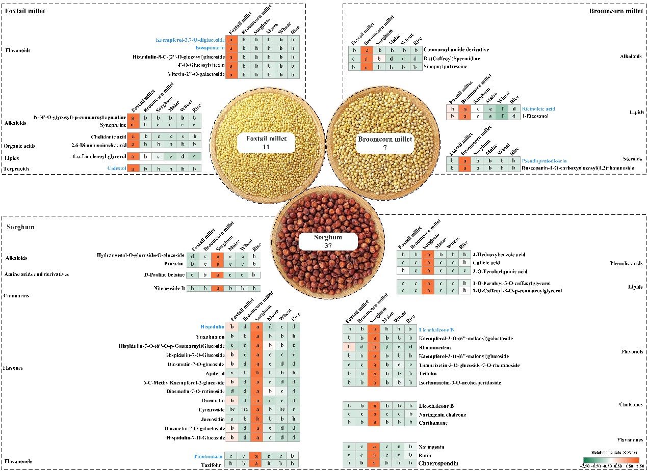 图4 杂粮的特征代谢物