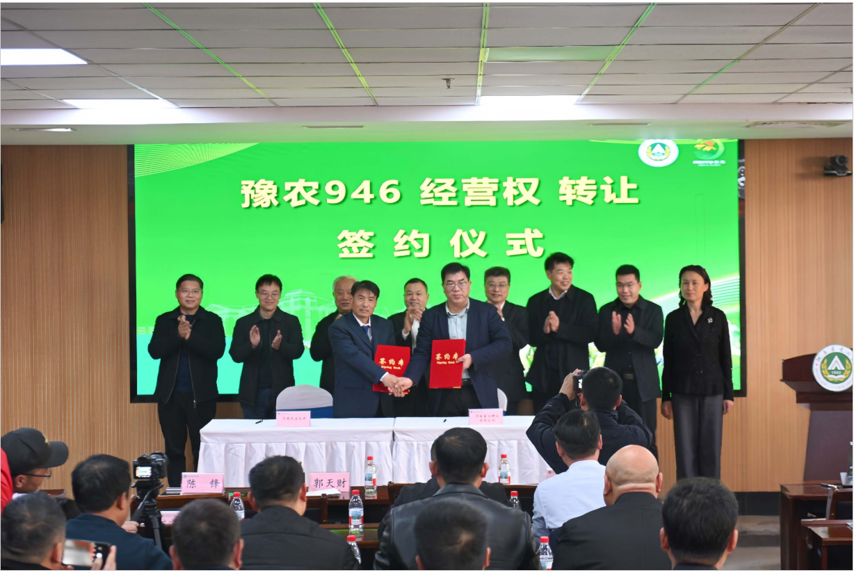 此次转让的两个小麦品种是极速快三 殷贵鸿教授团队多年精心培育的科技成果结晶。“豫农923”是今年即将通过国家审定的小麦新品种,具有优质强筋、高产、多抗、广适等特点,尤其较好地解决了优质品种不高产、优质品种不抗寒不抗倒的矛盾。“豫农946”小麦新品种是殷贵鸿团队综合运用诱变育种﹢基因聚合育种﹢双单倍体育种(DH)与一年4次加代快速育种﹢抗病和抗逆性鉴定﹢品质平行测定筛选等先进技术,定向选育而成的半冬性、超高产、多抗、广适、氮磷钾高效利用的突破性小麦新品种,该品种2024-2025年度参加河南省冬水E组区试,平均亩产624.5公斤,比对照品种百农207增产10.06%,居11个参试品种第1位,增产极显著。备受小麦种业界的广泛关注,推广前景十分广阔。
