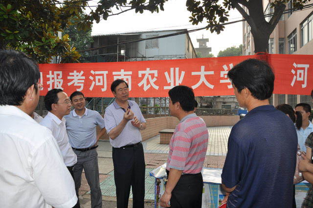 在南阳地区的招生宣传人员是程传兴书记此次活动的又一主要内容。三天里,程书记一行先后来到南阳市一高、方城县五高、西峡县一高等6所重点高中。看到正在热火朝天宣传讲解的服务团人员,程书记动情地说到:“同学们,你们确实很辛苦,但你们所做的事情非常有意义,因为你们既是为母校宣传,也是在为家乡做贡献!感谢你们!”