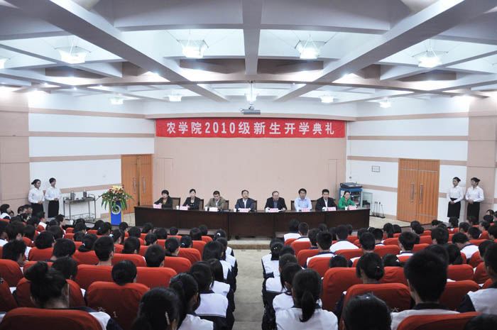在300人报告厅隆重举行2010级新生开学典礼,热烈欢迎新同学的到来。院党总支书记朱春阳,院长林同保,党总支副书记余磊,副院长杨青华,副院长、院工会主席杨百黎,院团委书记易振,院办公室主任王春丽,院团委副书记郑兰兰出席,教师代表殷冬梅副教授及极速快三