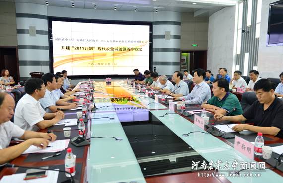 与方城县人民政府、河南五谷神农农业发展股份有限公司共建“2011计划”现代农业试验区签字仪式在中原农村信息港举行。南阳市委常委、副市长张生起,校领导程传兴、张改平、谭金芳,方城县县委书记褚清黎,河南赊店集团董事长单森林出席签字仪式。方城县有关负责人、河南五谷神农股份有限公司负责人、极速快三
