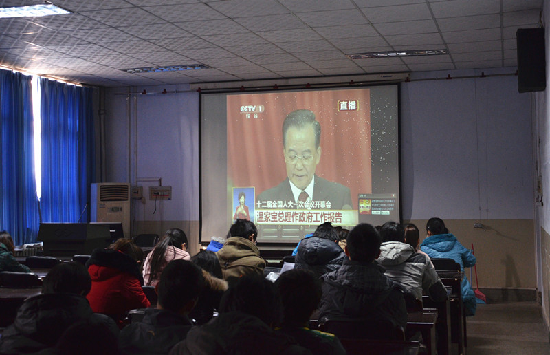 国务院总理温家宝作政府工作报告,从八方面回顾了过去五年的工作及特点,并对2013年的工作提出建议。报告在师生中间引起强烈反响,大家普遍认为,报告全面客观地介绍了当前我国经济社会发展的实际情况,既有成绩,又有不足,充分反映了近年来全党全国人民在中国共产党正确领导下所取得的巨大成就,催人奋进,令人鼓舞。有的同学认为,报告日益凸显民生话题,为自己将来的就业指明了方向,更加坚定努力学习专业知识的信心。报告中有关科技和教育的部分,让大家地对中国未来的发展充满了信心。