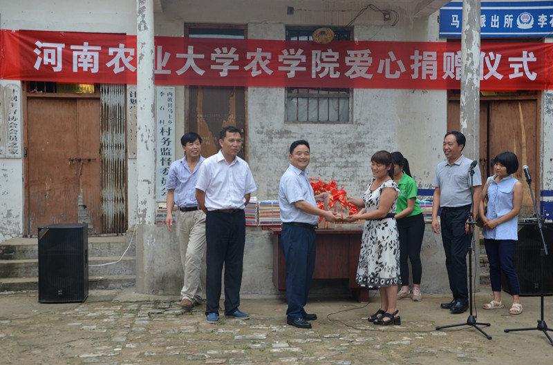 将继续发挥专业优势,加强与内黄县校地合作,为内黄县发展做出应有的贡献。在热烈的掌声中,褚金海向”微光书苑”创办人李翠丽捐赠了文学名著、农业科普读物和爱心礼品。