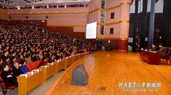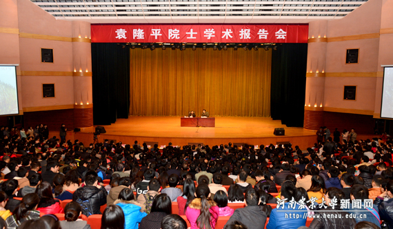 大礼堂为师生做报告,报告会由校长、中国工程院院士张改平主持。