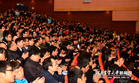在听到袁隆平院士带领科研团队刻苦攻关,超级杂交稻亩产连续突破700公斤、800公斤、900公斤,研究水平和应用效果在世界上遥遥领先,保障了中国13亿人的粮食安全,拯救了世界数以千万计的饥饿人民的时候,现场观众数次报以热烈的掌声,向袁隆平院士表达敬意。在得知袁隆平院士将以河南农大导师的身份面向极速快三