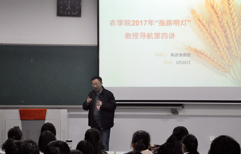的百年历史讲起,并结合自身的经历,引导学生学农爱农,激励和鼓舞同学们要有一种“现在,我为农大自豪;以后,农大以我为骄傲”思想,在专业上实现自身的价值。