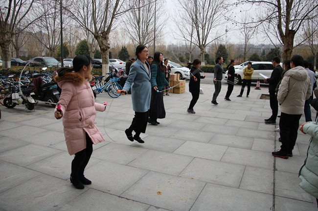 活动由踢毽子和跳绳两组活动组成。活动现场,跳绳上下翻飞,毽子腾飞起落,老师们个个身手矫健,轻巧灵活。观战的教工们一边拿着衣物,一边加油助威,与参与者一同融入温馨、欢乐的活动气氛中。