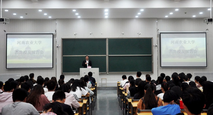邀请河南金苑种业股份有限公司董事长、河南种子协会会长、国家农作物品种审定委员会玉米专业委员会委员、1980级农学专业康广华先生在龙子湖校区繁塔楼大教室八举办杰出校友报告会。报告会由副院长蔡祖华主持,团委书记冯晖、团委老师梁皓和李盼以及17级农学、种子科学与工程、作物生物技术专业学生参加了报告会。