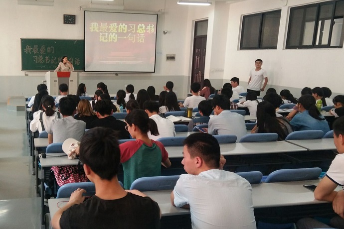 专业、学科及自身特点,以“我最喜爱的习总书记的一句话”为主题,围绕中国特色社会主义思想,选取自己最喜爱的习近平总书记的一句话,谈理解、谈体会、谈实践。“不忘初心、继续前行”“幸福是奋斗出来的”“要励志,立鸿鹄志,做奋斗者”……同学们将习总书记的讲话精神,与自身学习生活深度融合,内容充实、思想深刻、情感真挚,诠释个人对于习总书记经典语录的认知与理解,引发了在场同学的广泛共鸣。