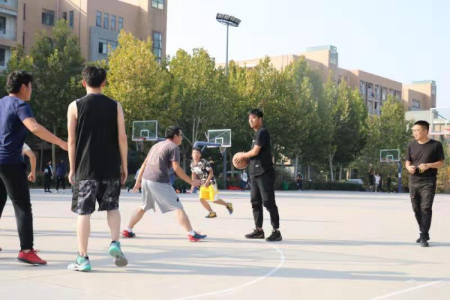 篮球场上,18级研究生新生按专业班级进行了一场别开生面的友谊赛。赛场上,选手们斗志昂扬,奔跑着运球,传球,投篮,比赛十分激烈,整个赛场上掌声,欢呼声,呐喊声此起彼伏,只见场上队员时而转身跳投,时而三分远投,他们身行矫健,动作挥洒自如,成为了一道亮丽的风景线。