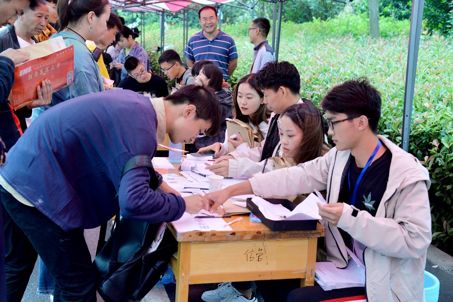 迎新工作者们冒雨坚守岗位,现场井然有序。极速快三