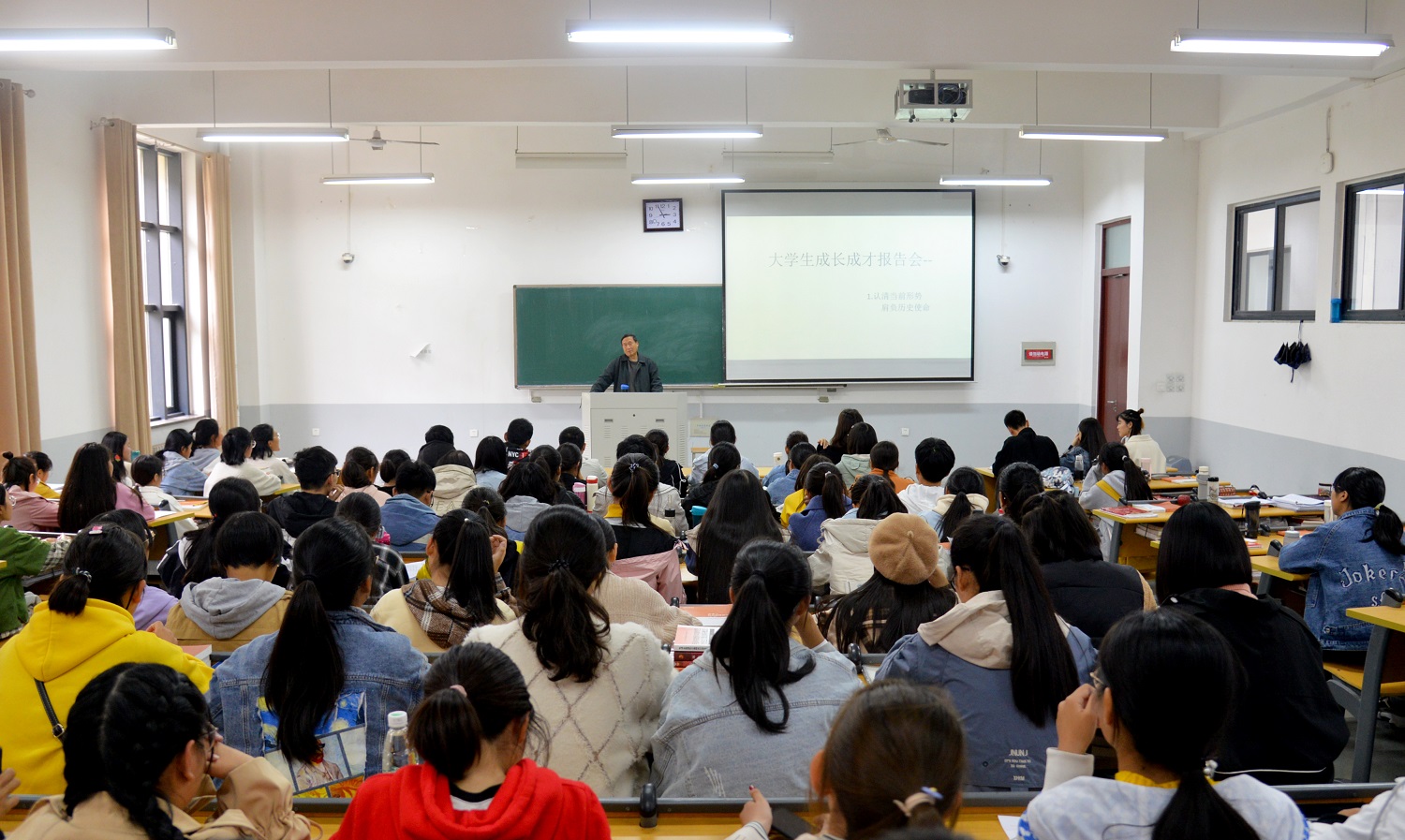 10月15日下午,极速快三 在龙子湖校区教学楼E109召开大学生成长成才报告会。报告会由校关工委秘书长杨明亮主讲,极速快三 辅导员李盼主持。极速快三 2019级近百名学生与会。