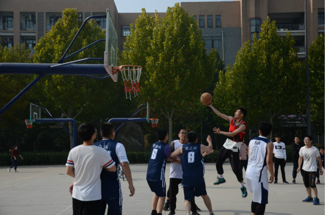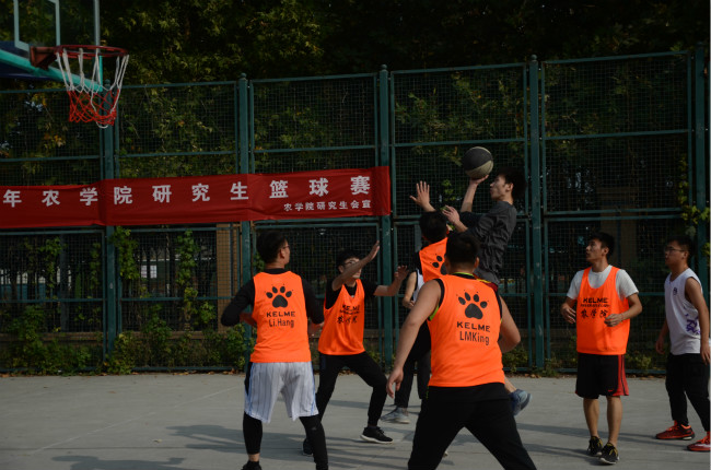 研究生篮球赛在龙子湖校区篮球场拉开帷幕。