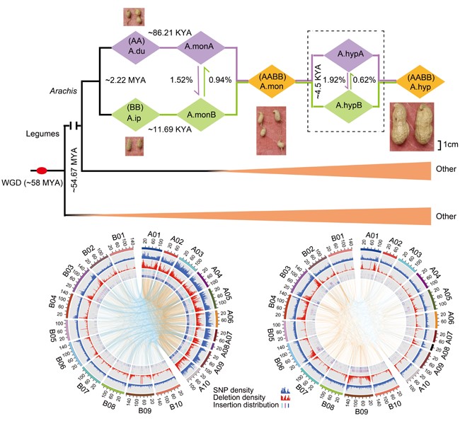 近日,殷冬梅教授团队在Wiley知名期刊《Advanced Science》上发表题为“Comparison of Arachis monticola with diploid and cultivated tetraploid genomes reveals asymmetric subgenome evolution and improvement of peanut”的最新研究进展,首次明确了异源四倍体野生种Arachis monticola在花生从野生二倍体到栽培四倍体的重要驯化地位;证实了异源四倍体花生中A和B亚基因组的单系起源以及在驯化过程中的亚基因组功能分化;为多倍体基因组的进化、作物的驯化以及提高花生产量和抗性等性状具有重要价值。该杂志影响因子达到15.804(1区Top期刊),其中殷冬梅教授为第一作者和第一通讯,极速快三