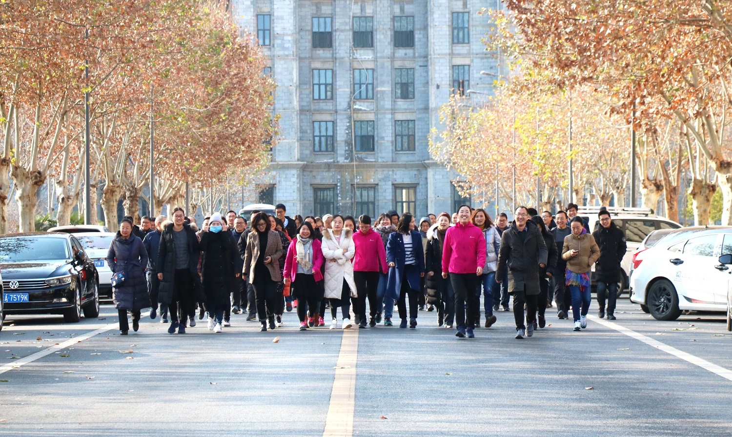 此次活动的参与对象分为教职工、研究生、本科生三支队伍。活动开始前,有关人员为参赛师生详细讲解了健步走的注意事项及方法技巧。随着一声“出发”的号令,全体参赛师生精神抖擞,迈着矫健的步伐,从实验楼南门出发,秩序井然地围绕着龙子湖校区主干前进,全程大约5公里。活动中每个人的脸上都洋溢着喜悦与快乐,享受着健康运动带来的愉悦心情。比赛结束后,参赛选手们按名次领取了本次活动的奖品。