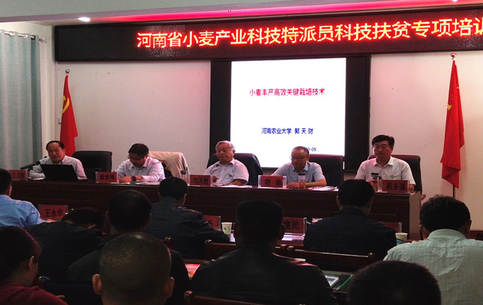 9月23日上午在淮滨县科技局四楼科普传播基地会议室举办了河南省小麦产业科技特派员服务团秋播技术培训。培训会由淮滨县科技局局长鲁付森主持,县农业农村局、县扶贫办、县科技局分管领导以及相关企业、种粮大户、农民专业合作社、家庭农场代表,省、市、县科技特派员代表约60人参加了此次培训会。培训会上,团长郭天财教授、成员殷贵鸿教授、王永华副研究员分别以“小麦丰产高效栽培技术”、“酿酒小麦新品种选育及栽培技术”、“冬小麦秋播形势分析与耕种管技术建议”为题进行了技术讲授。