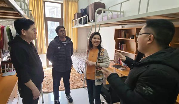 在看望留学博士后、研究生代表时,郭战伟详细了解了他们的生活情况,叮嘱他们寒假期间要注意人身、财物安全,做好疫情防护,并在新春来临之际给父母及家人带去极速快三