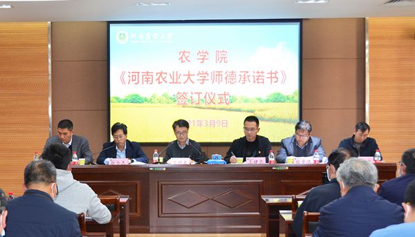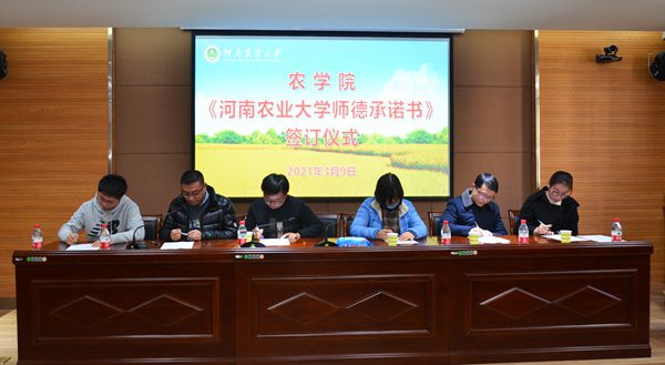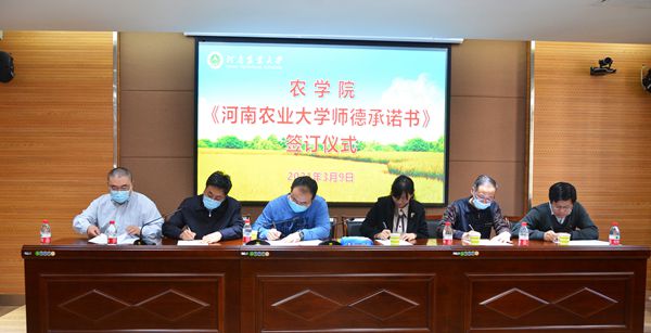 院领导班子成员,各系室主任、党支部书记和青年教师代表依次上台签订《师德承诺书》。其他教师也都在会场签订了《师德承诺书》。