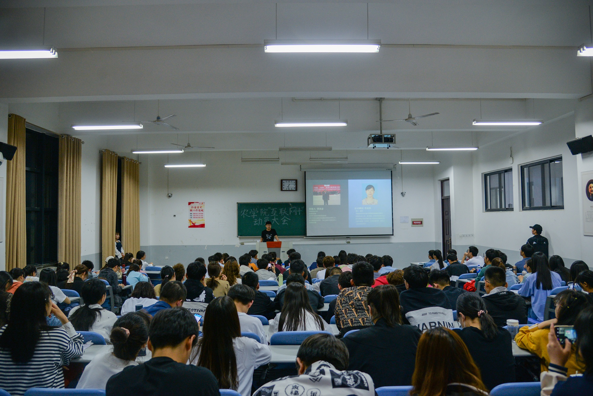 大会开始,唐朝分别从主题赛事、作品要求、赛程安排等方面向同学们详细介绍了本次“互联网+”大学生创新创业大赛活动,同时结合往年参赛项目的优缺点,详细介绍并规范了参赛作品的格式及要求,并建议大家选题要有新意、有市场,切合关键商业性,最后他表达了对同学们取得优秀成果的殷切期望。在郭艺洁介绍大赛的相关内容和网上申报流程后,往年获奖学生张思捷和郭文龙结合个人参赛经验,从赛前准备及选题、赛中调整、ppt制作与讲解、小组合作四个方面做出了详细介绍,他们强调本次创新创业大赛实质上是思想火花的碰撞,需要同学们积极探讨,发现生活中的创新点。随后,在聆听了现场同学就大赛流程和内容提出的疑问之后,他们积极进行了解答并希望同学们能够积极参与到创新创业的浪潮中,为自身积累经验。最后,郭艺洁再次强调了比赛的重要性及极速快三