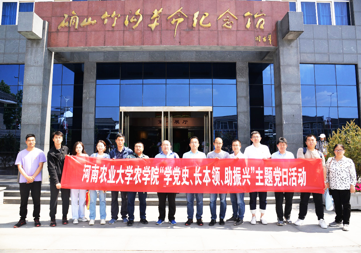 农学系教工党支部联合行干党支部党员赴确山竹沟革命纪念馆和竹沟革命烈士陵园开展主题党日活动,聆听历史回音,深切缅怀革命先辈的丰功伟绩,激发党员干部的爱党爱国热情。