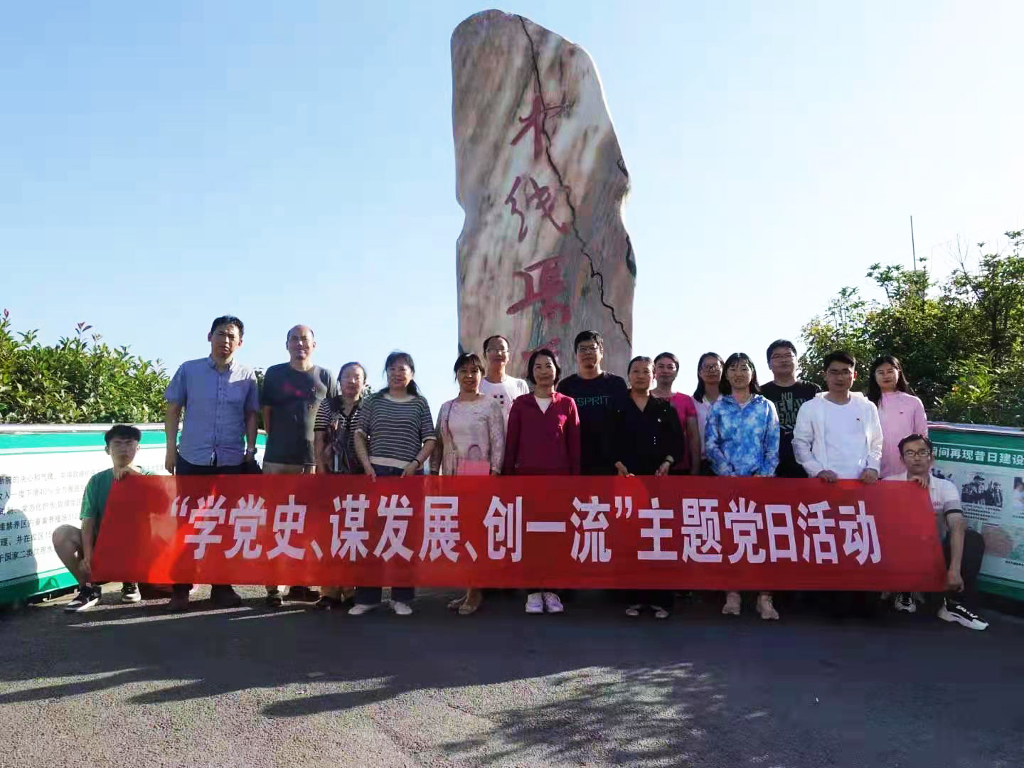 随后,师生党员赶赴淅川县南水北调中线渠首,在雄伟的水库大坝旁,共同学习南水北调中线工程的建设历史,感受水源地生态保护所取得巨大成就和南水北调移民过程中“集中力量办大事,舍小家为大家”的精神。