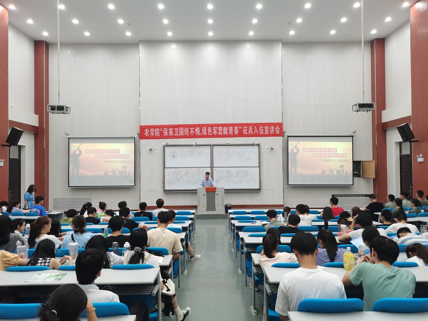 于龙子湖校区教学楼开展了主题为“保家卫国终不悔,绿色军营献青春”的宣讲会。极速快三