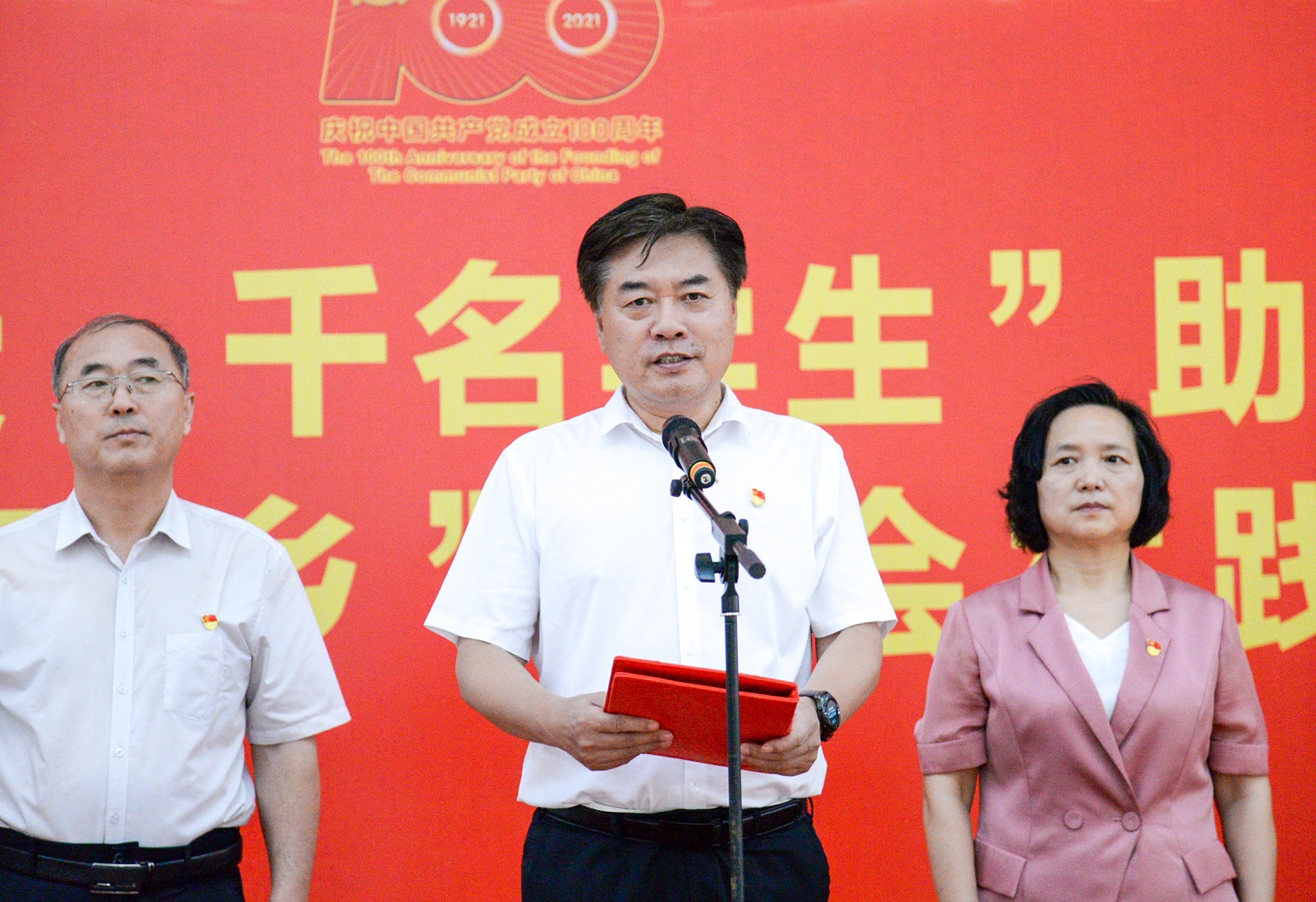 “百名教授 千名学生”助力乡村振兴暨2021年暑期“三下乡”社会实践活动启动仪式。校党委副书记、工会主席李成吾、副校长尹新明、副校长林同保和极速快三