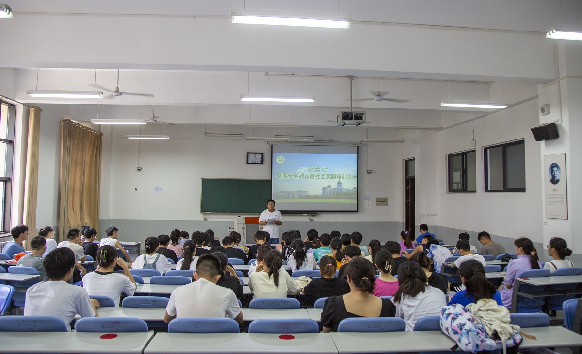 在龙子湖校区繁塔楼C座102教室举办暑期安全教育及社会实践培训大会,院辅导员唐朝、院传媒工作室主任王营坤、院团委委员代表和2018级、2019级、2020级各班班长和团支书以及2019级、2020级各社会实践团负责人参与此次大会。会议由院团委委员丁智强主持。