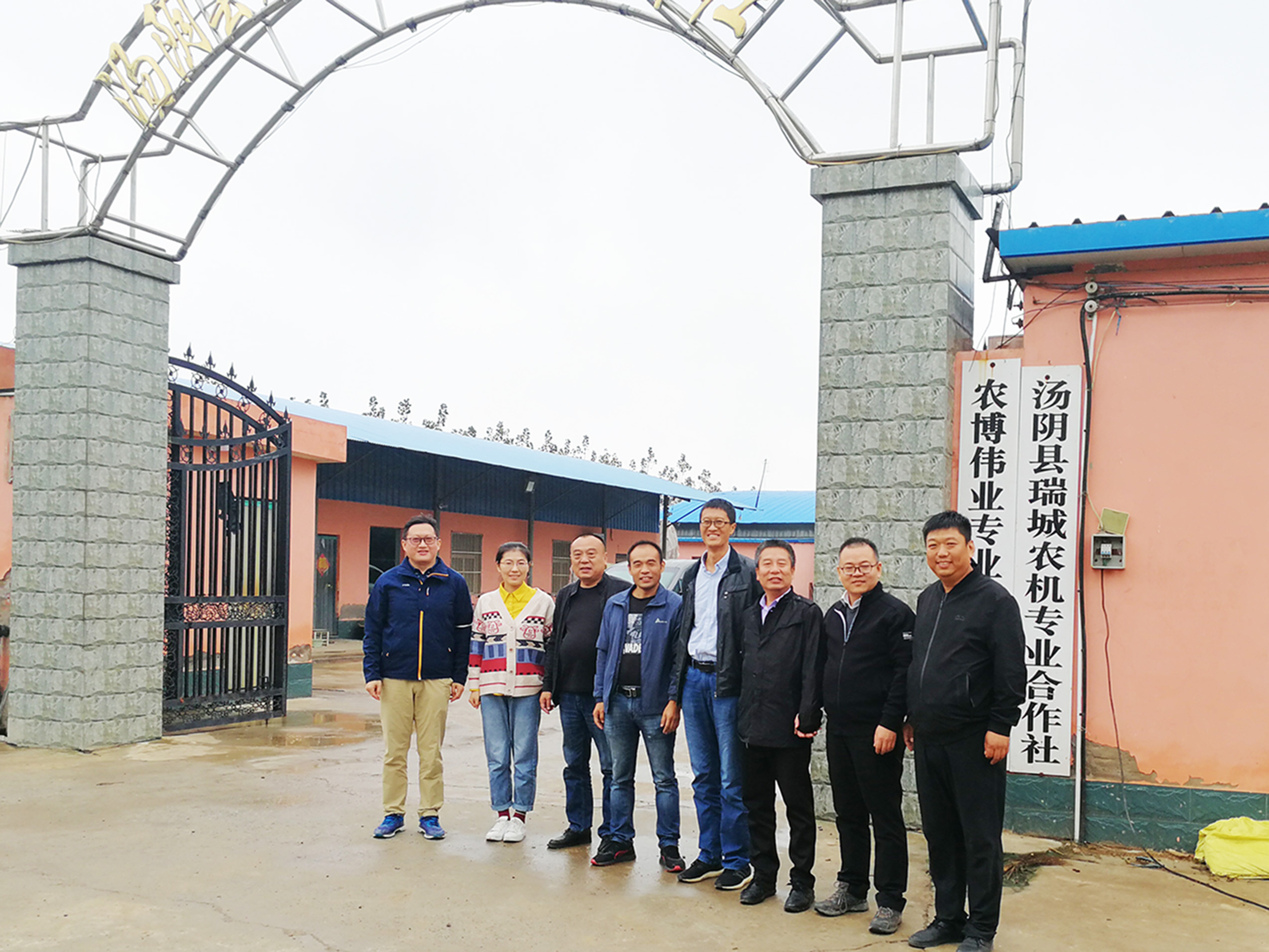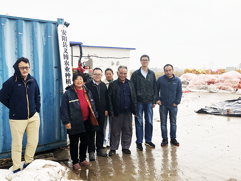 在安阳县义博农业种植专业合作社做好玉米收储技术指导后,同负责人、技术工人合影留念