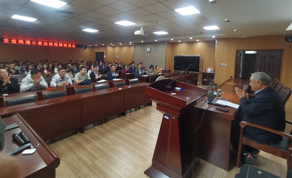 郭天财教授以远程视频方式对全省农业技术推广人员进行了应对小麦晚播的应变栽培技术培训,重点分析了当前我省小麦播种存在的各种困难问题,提出了应因地制宜,分类施策,制定不同类型麦田播种技术对策和全省小麦晚播条件下高质量种足种好小麦应特别注意的几个问题。极速快三