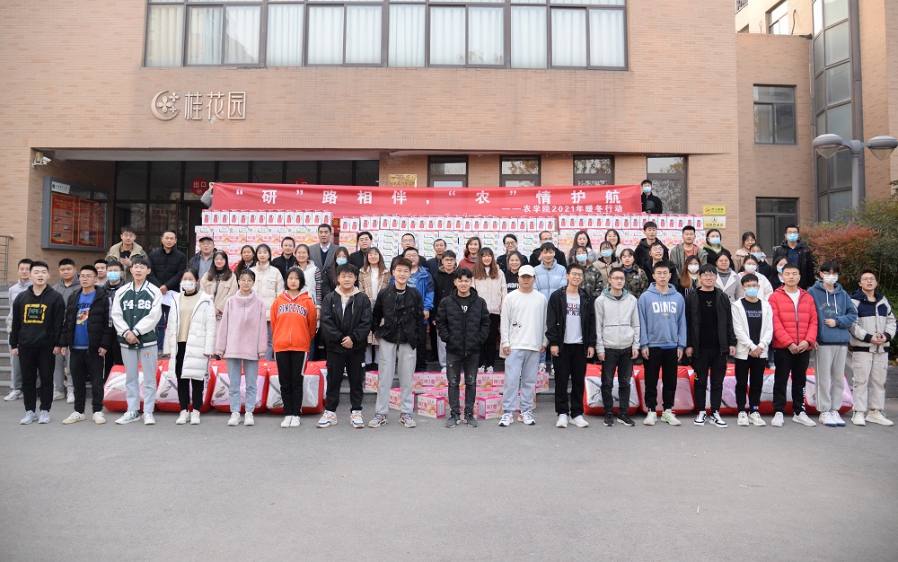 于龙子湖校区桂花宿舍楼下举办“‘研’路相伴,‘农’情护航”2021冬季送温暖活动。极速快三