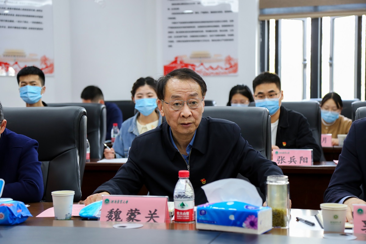 学生党员发言过程中,魏蒙关听边记边询问,与同学们深入交流思想,并有针对性地提出意见建议。