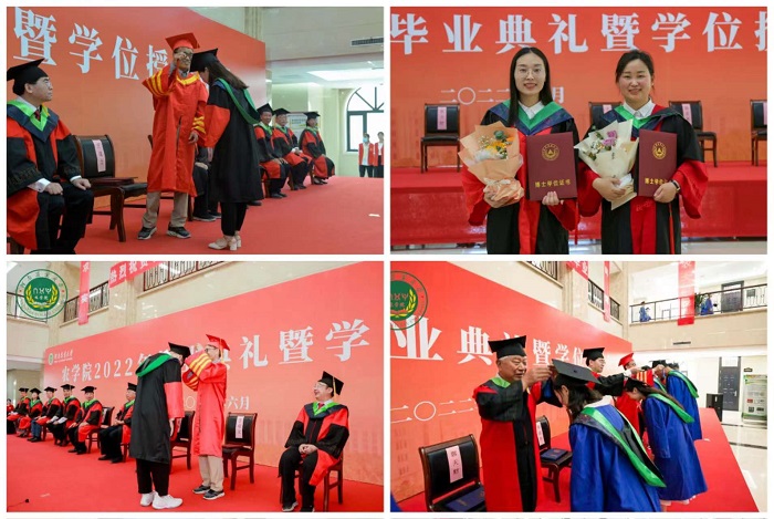 隆重举办2022年毕业典礼暨学位授予仪式。校党委委员、院党委书记郭战伟,学术副校长、院长王道文等在校院领导,郭天财教授、陈彦惠教授以及院学位委员会委员出席会议,辅导员、毕业班各班班主任和全体2022届毕业生参加会议。活动严格遵循疫情防控规定,以线上线下相结合的形式,以班级为单位分批进行。毕业典礼前,播放了学生拍摄的合唱纪念视频——“我们都是追梦人”,在学位授予仪式中,师生微笑、握手、拨穗、授证、合影……每一个瞬间都见证着毕业生们人生中最难忘的时刻。