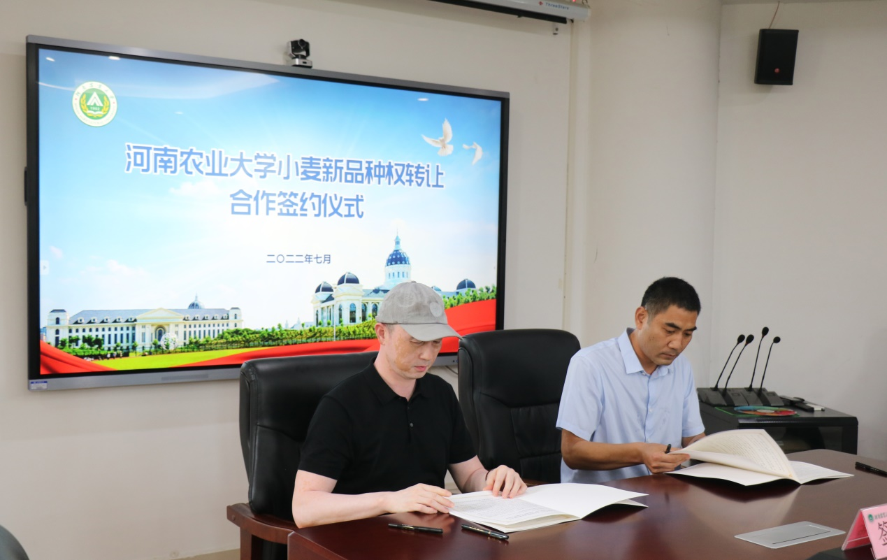 龙子湖校区第一实验大楼南201会议室举行。河南兴周农业发展有限公司董事长王五、河南省金博农种业有限公司董事长谭松根、河南平安种业有限公司董事长吕平安参加签约仪式,校党委委员、极速快三