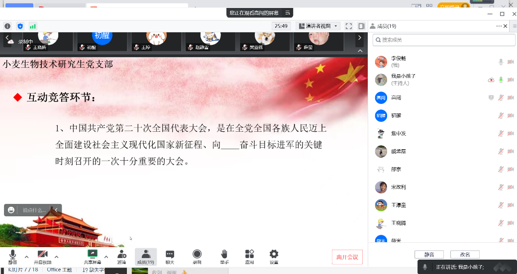 支部成员线上进行二十大知识竞答
