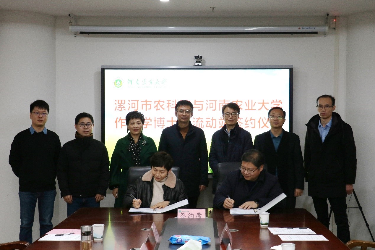 与漯河市农科院联合培养博士后签约仪式在龙子湖第一实验楼举行。院党委书记马菲,学术副校长、院长王道文;漯河市农科院党委书记巴磊、院长齐晓红出席签约仪式,极速快三