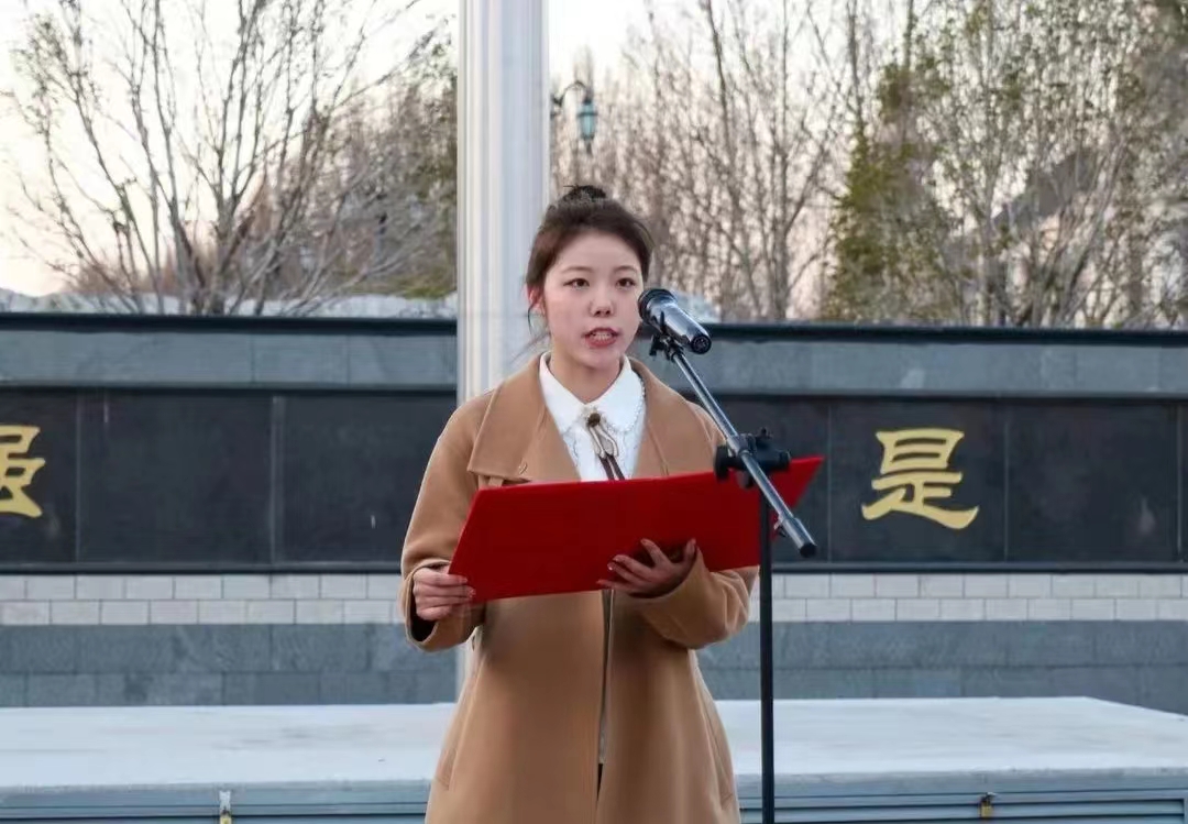 院团委副书记李盼主持升旗仪式