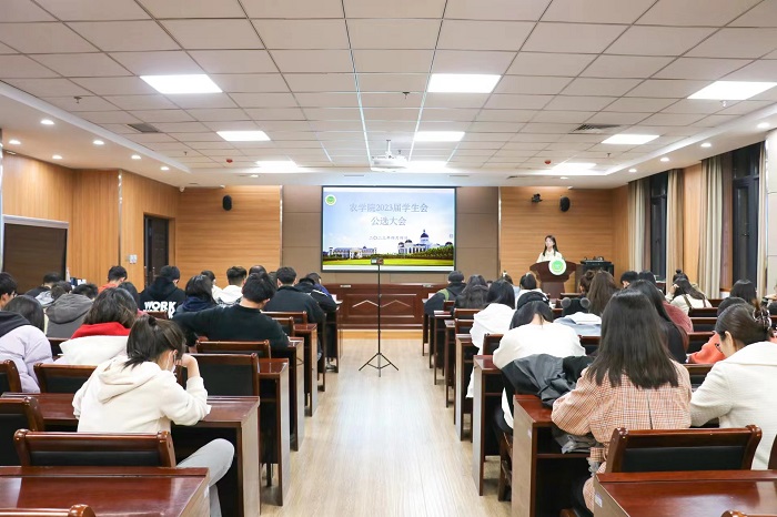 于龙子湖校区第一实验楼南321会议室举行2023年学生会公选大会。此次会议以线上线下相结合的方式进行。院团委书记朱瑞萍、院团委副书记唐朝、院团委老师李玥瑞、学生会候选成员及2021级各班学生代表参加此次大会,2022级学生代表以直播形式参与。会议由学生会办公室主任郑晓雯主持。