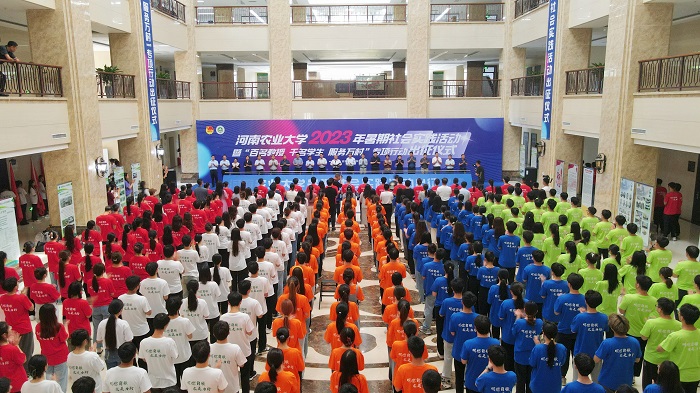 2023年暑期社会实践活动暨“百名教授 千名学生 服务万村”专项行动出征仪式在龙子湖校区第一实验楼隆重举行。校党委副书记游舸宣布活动开幕并主持出征仪式。