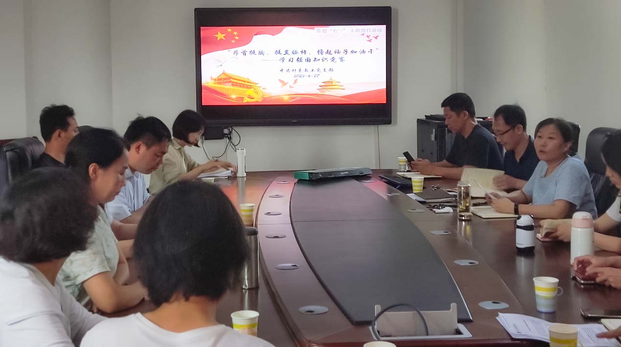 中药材系教工党支部在第一实验楼南422会议室开展了以“昂首挺胸,挺直腰杆,撸起袖子加油干”为主题的特色党日活动暨学习强国知识竞赛。