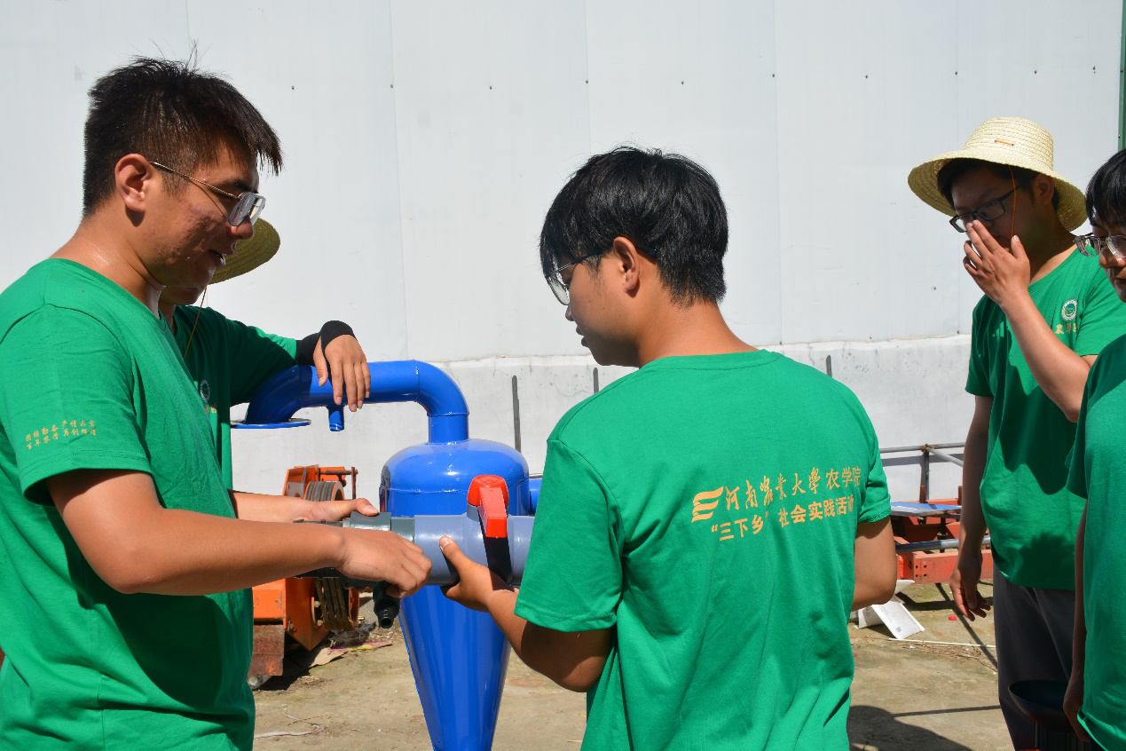 王群教授的带领下到驻马店西平县,走进西平县二郎镇高标准农田里开展玉米密植高产精准调控技术推广调研工作。实践团先后来到西平县二郎镇中国农技推广站、鑫鑫农场等地,与当地的农户及种粮大户交流,并深入了解、学习考察当地夏播实际生产状况。
