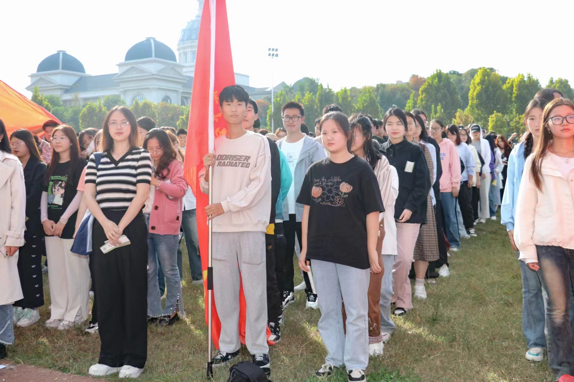 联合承办了丰富有趣的游戏项目。此区域以“心”为线索划分了以德育心、以智慧心、以体强心、以美润心、以劳健心五部分。其中"妙笔生花”、“极速辩德"生动活泼,以轻松有趣的形式深化了同学们对道德的理解;“Go,去秋日里"中大家积极领取透明花瓶,在操场各处寻找秋天的落叶,感受秋日的气息。“趣味五子棋”活动中,大家排成两队,接力移动棋子。“快快快,堵他!”当三子相连时,劣势的队伍屏息凝神,把希望寄托在冲刺在前的对友,而另一队却激情高涨大喊:“加油!加油!加油!”……各种活动异彩纷呈,参赛选手精采绝伦的表现引得同学们驻足欣赏并纷纷鼓掌。操场上洋溢着青春的快乐,大家在游戏中摒弃烦恼,拥抱积极的情绪。